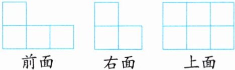 (1)贝贝用棱长为1厘米的小正方体摆成一个物体,从前面、右面和上面分别观察这个物体,看到的形状如图所示。这个物体的表面积是(