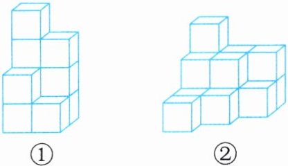 2. (数形结合)下面两个立体图形都是由棱长1cm的正方体搭成的。
