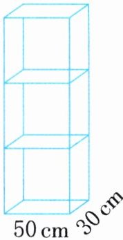 4. 妈妈买了一个三层书架(如图),书架外包装标明“50cm×30cm×150cm”。做这个书架,至少需要多少平方分米的木板?(木板材质相同,厚度忽略不计,左面、右面、后面、上面、底面及中间隔板均为木板)