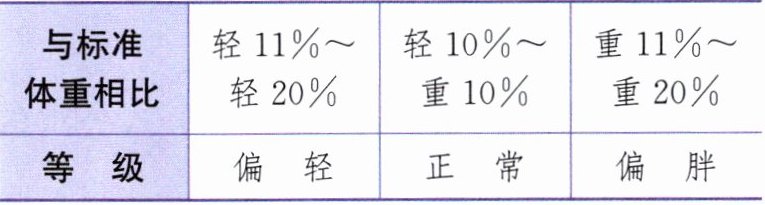 (180-80)×70%=70(千克) (80-70)÷70≈14.3% 11%<14.3%<20% 等级是偏胖我建议他多进行体育锻炼,多吃粗粮(合理即可)