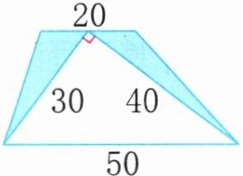 5.30×40÷2×2÷50=24(厘米) 20×24÷2=240(平方厘米) 解析:先求出空白直角三角形的面积,从而可求出其斜边上的高,即梯形的高。再根据两个涂色三角形的底之和等于梯形的上底,两个涂色三角形的高相等,且等于梯形的高,即可求出涂色部分的面积。