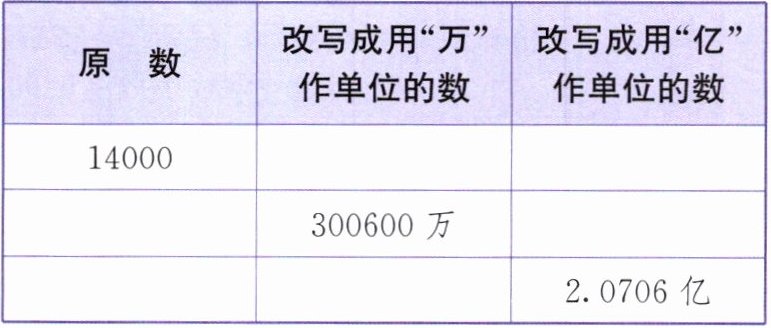 |原 数|改写成用"万"作单位的数|改写成用"亿"作单位的数|
