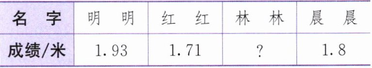 (1)下面是五年级二班四名同学跳远比赛的成绩统计表。已知林林获得了第二名,则他的成绩可能是(