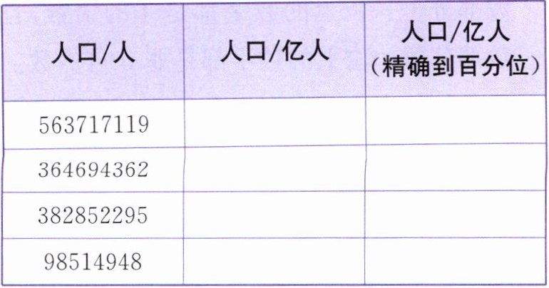 3. 下表中从上到下依次是第七次全国人口普查公报中公布的东部地区、中部地区、西部地区、东北地区的人口数据。先把表中的数改写成用“亿”作单位的数,再精确到百分位。