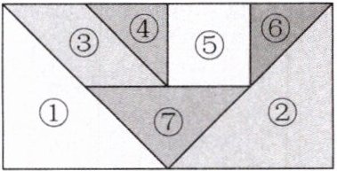 解析:仔细观察拼成的长方形中的每一块板,它们的形状有平行四边形、三角形和正方形。①、②号板的面积相等,且面积之和是拼成的长方形面积的一半;⑦号板的面积是①号板面积的一半;④、⑥号板的面积相等,且是⑦号板面积的一半;③、⑤号板的面积相等,且是④号板面积的2倍。