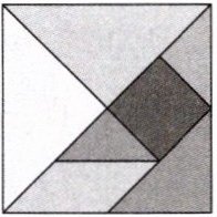 [解析]仔细观察拼成的正方形中的每一块板,它们的形状有平行四边形、三角形和正方形。两个大三角形的面积之和是拼成的正方形面积的一半;中等三角形的面积是大三角形面积的一半;每个小三角形的面积是中等三角形面积的一半;小正方形的面积是小三角形面积的2倍;平行四边形的面积也是小三角形面积的2倍。