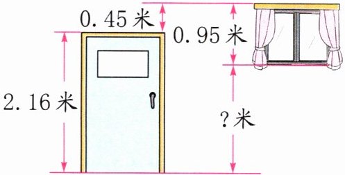 5. 2.16 + 0.45 = 2.61(米) 2.61 - 0.95 = 1.66(米)