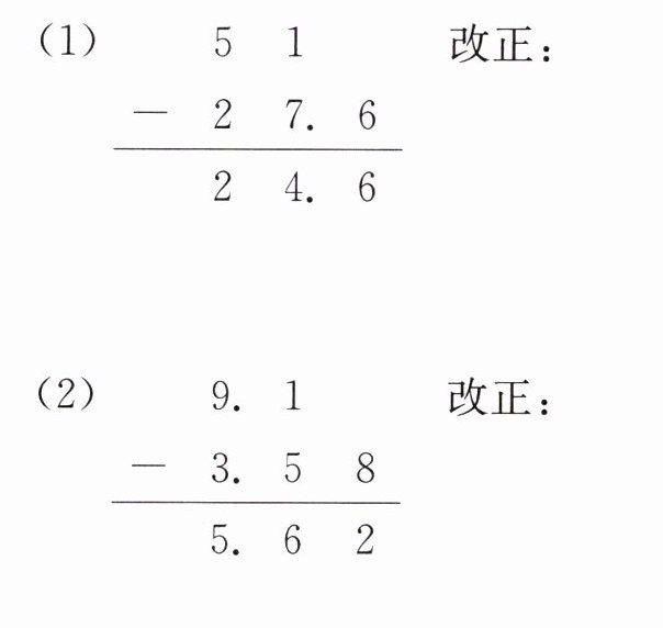 (2)十分位上的数字相减时,没有减去退位的1 5.52 竖式略