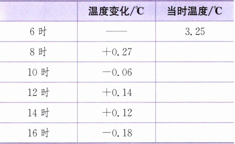6. 下面是一个冷库某天6时至16时的温度变化情况记录表,请将记录表填写完整。