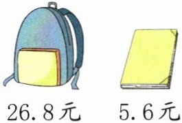 3. 新学期开学时,妈妈给丽丽买了一个书包和一本笔记本(如图),她付给收银员50元,应找回多少元?