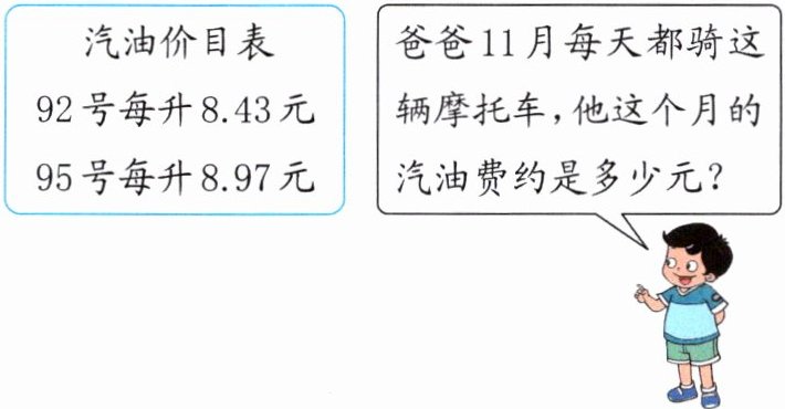 爸爸11月每天都骑这辆摩托车,他这个月的汽油费约是多少元?