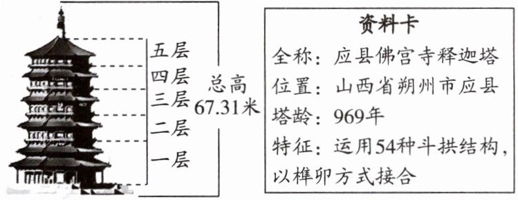 (2)交流环节,小文同学展示了应县木塔的木制模型,引得同学们啧啧称奇。请你仔细观察模型,结合资料卡写一段生动的解说词,向大家介绍应县木塔。(不少于 100 字)(4 分)