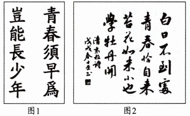 小常:我觉得图 1 楷书好,楷书端庄,我们青少年也要品行端正,趁青春年少,大有一番作为。