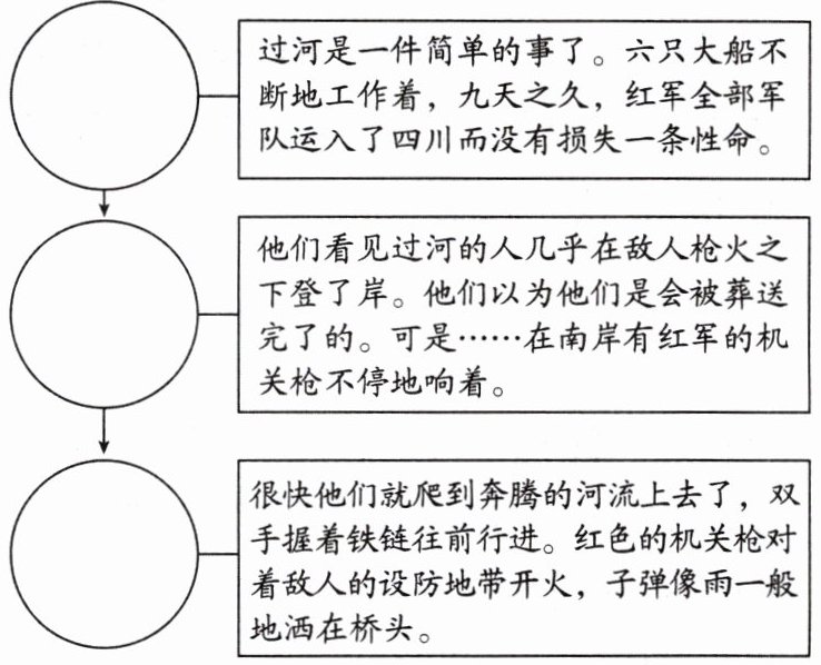 【“伟大长征路”专题探究】(1)以下是大家在书中摘录的相关语句,请你据此判断它们分别描述的是长征中的哪一事件,并将其写在圆圈里。(3 分)