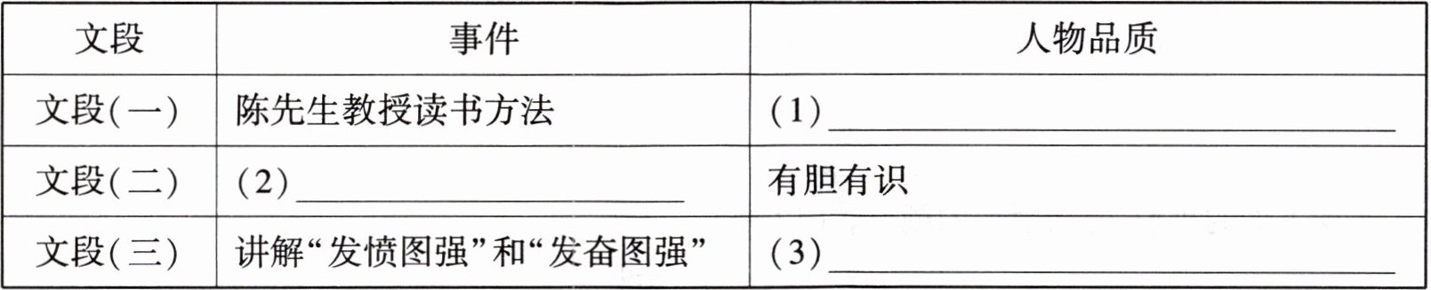 | 文段(一) | 陈先生教授读书方法 | (1)______ |