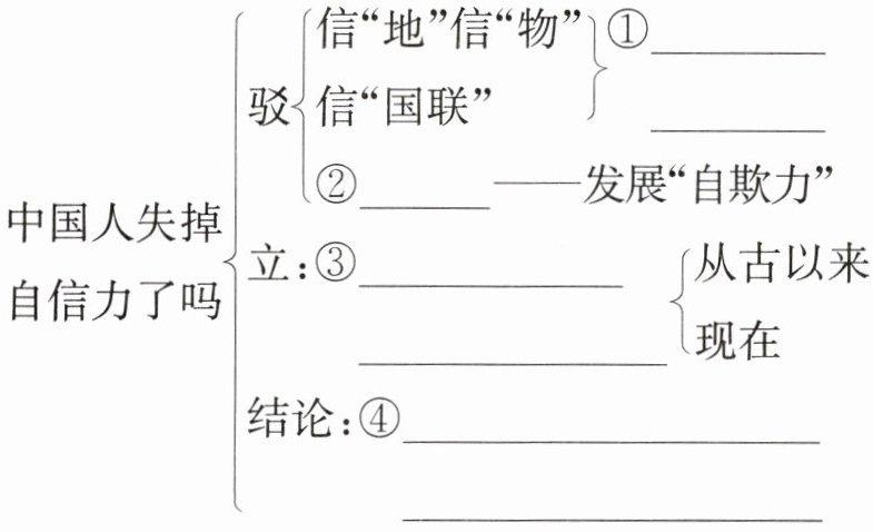 ①曾有过“他信力” ②信神佛 ③我们有并不失掉自信力的中国人在 ④自信力的有无,状元宰相的文章是不足为据的,要自己去看地底下