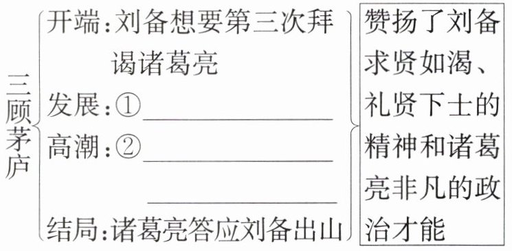 ①茅庐中拜谒碰壁 ②诸葛亮隆中对策,纵论天下大势