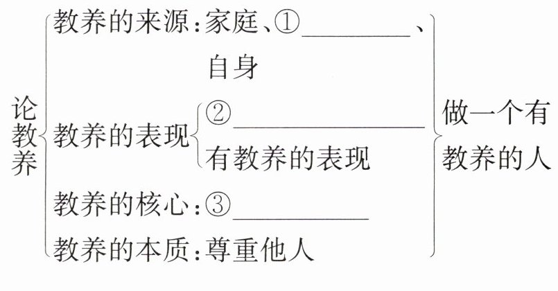 (4)示例:有教养的人遵守公共秩序,不会随地吐痰和乱扔杂物(2分)