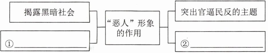 (2)《水浒传》中的“恶人”形象对小说主题、情节、主要人物的展现都有不可或缺的作用,请补全下面的思维导图。