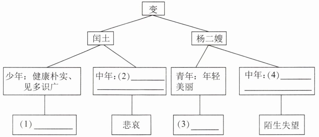 3. 【形象分析】根据选文中的人物及情感变化,完成下面的思维导图。