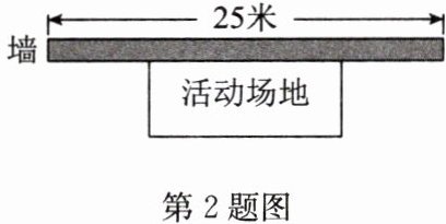 2. 如图,学校有一个面积为182平方米的长方形的活动场地,场地一边靠墙(墙长25米),另三面用长40米的合金栏网围成. 请你计算一下活动场地的长和宽.