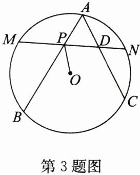 3. 如图,$AB$,$AC是\odot O$的两条弦,$M是\overset{\frown}{AB}$的中点,$N是\overset{\frown}{AC}$的中点,弦$MN分别交AB$,$AC于点P$,$D$。