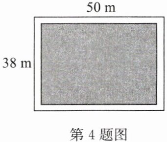 4. 如图,在长为 50 m,宽为 38 m 的矩形地面内的四周修筑同样宽的道路,余下的铺上草坪.要使草坪的面积为$1260m^{2}$,道路的宽应为多少?
