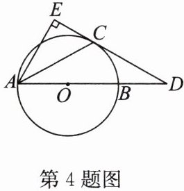 4. 如图,AB为$\odot O$的直径,过点C的切线DE交AB的延长线于点D,$AE⊥DC$,垂足为E.求证:AC平分$∠BAE$.