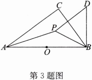 3. 如图,在Rt△ABC中,∠C= 90°且AB= 2,点P为△ABC的内心,点O为AB边的中点,将BO绕点B顺时针旋转90°得到线段BD,连接DP,求DP长的最小值。