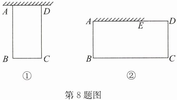 8. (2024·玄武区期末)如图,校园空地上有一面长为 4 米的墙.为了创建美丽校园,学校决定用这面墙和 20 米的围栏围成一个矩形花园 ABCD.