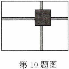 10. 某公园准备在一块长为 42 m,宽为 30 m 的长方形花园内修建一个底部为正方形的温室花房(如图),在温室花房四周修四条宽度相同,且与温室花房各边垂直的小路,温室花房边长是小路宽度的 6 倍,花园内其他空白地方铺草坪,设小路宽度为x m.
