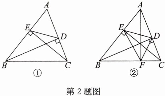 2. (1)如图①,BD,CE是锐角$\triangle ABC$的高,连接DE,求证:$∠ADE= ∠ABC;$