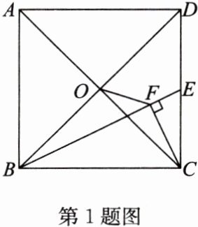 1. 如图,在正方形ABCD中,$AB= 2$,点O是对角线AC,BD的交点,点E是CD的中点,连接BE.过点C作$CF⊥BE$,垂足为点F.连接OF.求OF的长.