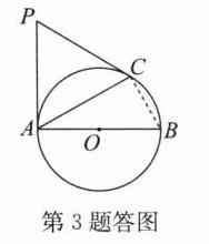 3. 如图,已知 AB 为$\odot O$的直径,PA,PC 是$\odot O$的切线,A,C 为切点,$∠BAC= 30^{\circ }.$
