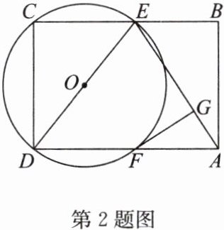 2. 如图,在矩形$ABCD$中,$AB= 4$,$BC= 6$。$E为射线CB$上一动点,以$DE为直径的\odot O交AD于点F$,过点$F作FG\perp AE于点G$。