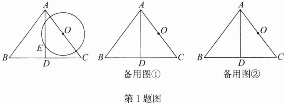 1. 如图,在$\triangle ABC$中,$AB= AC= 10$,$BC= 12$,$AD\perp BC$,$O为AC$的中点,$E为AD$上的一点,以点$O$为圆心,$OE长为半径作\odot O$。