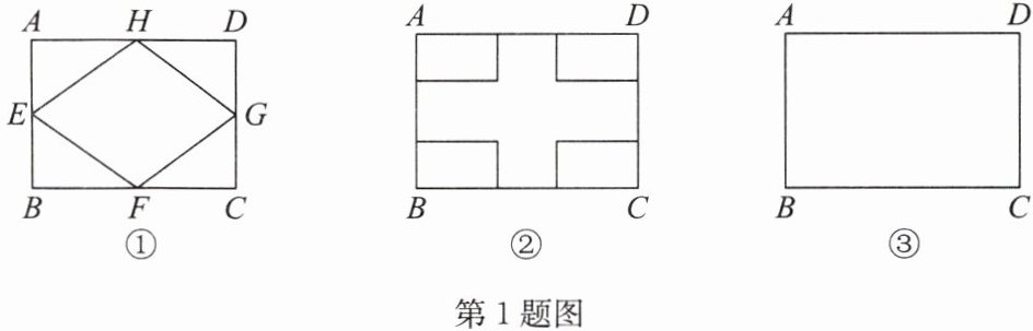 步骤二:在图纸上分别找到其他边的中点,顺次连接各边中点得到的四边形进行绿化,其余部分作为花坛,如图①。该小组计算后发现此时花坛的面积刚好是矩形空地面积的一半。