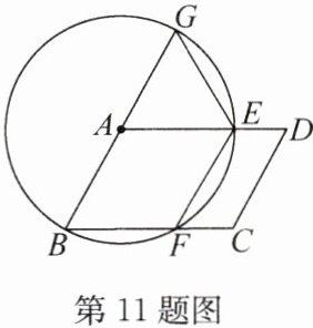 11. 如图,以平行四边形$ABCD的顶点A$为圆心,$AB长为半径作\odot A$,分别交$AD$,$BC于点E$,$F$,延长$BA交\odot A于点G$,连接$GE$,$EF$. 求证:$GE= EF$.