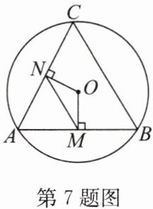 7. 如图,$AB$,$AC都是圆O$的弦,$OM\perp AB$,$ON\perp AC$,垂足分别为$M$,$N$,若$MN = 3$,则$BC = $(