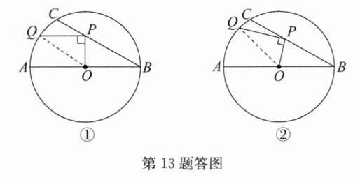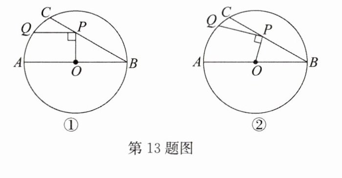 13. 已知$\odot O的直径AB = 6$,$BC$是弦,$\angle ABC = 30^{\circ}$,点$P在BC$上,点$Q在\odot O$上,且$OP\perp PQ于点P$。