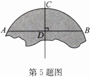 5. 如图, 残破的圆形轮片上, 弦 $ AB $ 的垂直平分线交 $ \overgroup { A B } $ 于点 $ C $, 交弦 $ AB $ 于点 $ D $. 已知 $ AB = 24 \mathrm {~cm}, CD = 8 \mathrm {~cm} $.