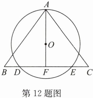 12. (2023·无锡二模) 如图, 在 $ \triangle ABC $ 中, $ AB = AC $, 点 $ D, E $ 在 $ BC $ 上, $ BD = CE $, 过 $ A, D, E $ 三点作 $ \odot O $, 连接 $ AO $ 并延长, 交 $ BC $ 于点 $ F $.