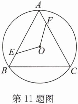 11. 如图, $ \triangle ABC $ 内接于 $ \odot O, AB = AC $, 动点 $ E, F $ 分别在边 $ AB, AC $ 上, 且 $ BE = AF $. 求证: $ \angle BAC + \angle EOF = 180 ^ { \circ } $.