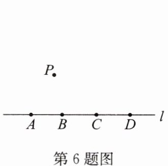 6. (2023·江西) 如图, 点 $ A, B, C, D $ 均在直线 $ l $ 上, 点 $ P $ 在直线 $ l $ 外, 则经过其中任意三个点, 最多可画出圆的个数为 (