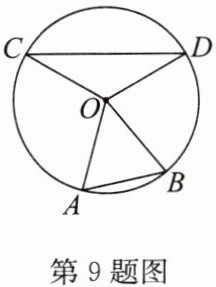 9.如图,在圆O中,弦AB,CD所对的圆心角分别是$∠AOB,∠COD$,若$∠AOB和∠COD$互补,且$AB= 2,CD= 4$,则圆O的半径是______.