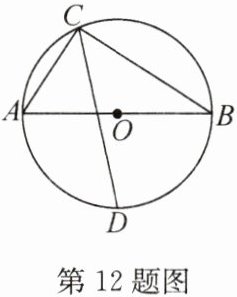12.如图,AB为$\odot O$的直径,点C在$\odot O$上,连接AC和BC,$∠ACB的平分线交\odot O$于点D.