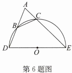 6.如图,$\triangle ADE$中,$DE= 6$,以DE为直径的半圆交$\triangle ADE$的边于B,C两点,O为圆心,且$AB= BC$,则AE的长为 (