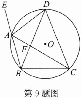 9. 如图,$\triangle ABC内接于\odot O$,$∠ABC > 90^{\circ}$,$∠BAC处的外角∠EAC的平分线交\odot O$于点 D,连接 DB,DC,DB 交 AC 于点 F.