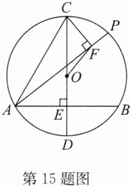 15. 如图,在半径为2的⊙O中,弦AB⊥直径CD,垂足为E,∠ACD= 30°,点P为⊙O上一动点,CF⊥AP于点F,连接OF.点P在⊙O上运动的过程中,求线段OF长度的最小值.