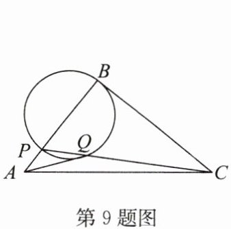 9. 如图,在△ABC中,∠ABC= 90°,AB= 8,P是AB边上的一个动点,以BP为直径的圆交CP于点Q,若线段AQ长度的最小值是4,则△ABC的面积为______